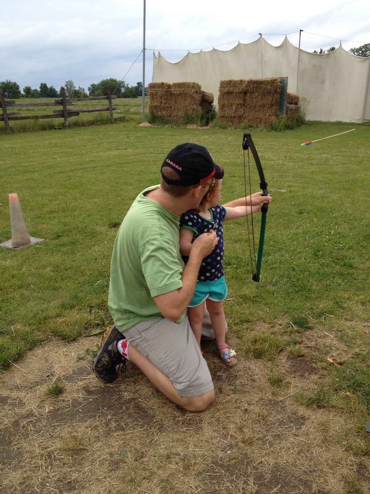 Then there was archery. I'm not sure if you are supposed to give a bow and arrow to an almost 3 year old. To be honest, I had my doubts, but ruby, being highly motivated to keep up, wasn't about to just watch others have all the fun and she insisted in getting in on the action. Thinking back to my own days at camp, I regret to admit that I never really gave archery it's due. But man oh man if I don't love it now. There is something remarkably satisfying about the whole experience. Maybe it's the twang of the bow string or the thwack of the arrow hitting the target. Maybe it's the simple prospect of hitting the bullseye. Maybe it's the whole part where, for a few brief moments, you get to imagine that you are sneaking through the forest tracking your prey. Maybe I just have a thing for Robin Hood. Who can really say for sure… What I can say for sure is that when you pop the balloon that is taped to the target and the archery instructor gives you a prize feather, you feel a little pleased with yourself. And you want to do it again.