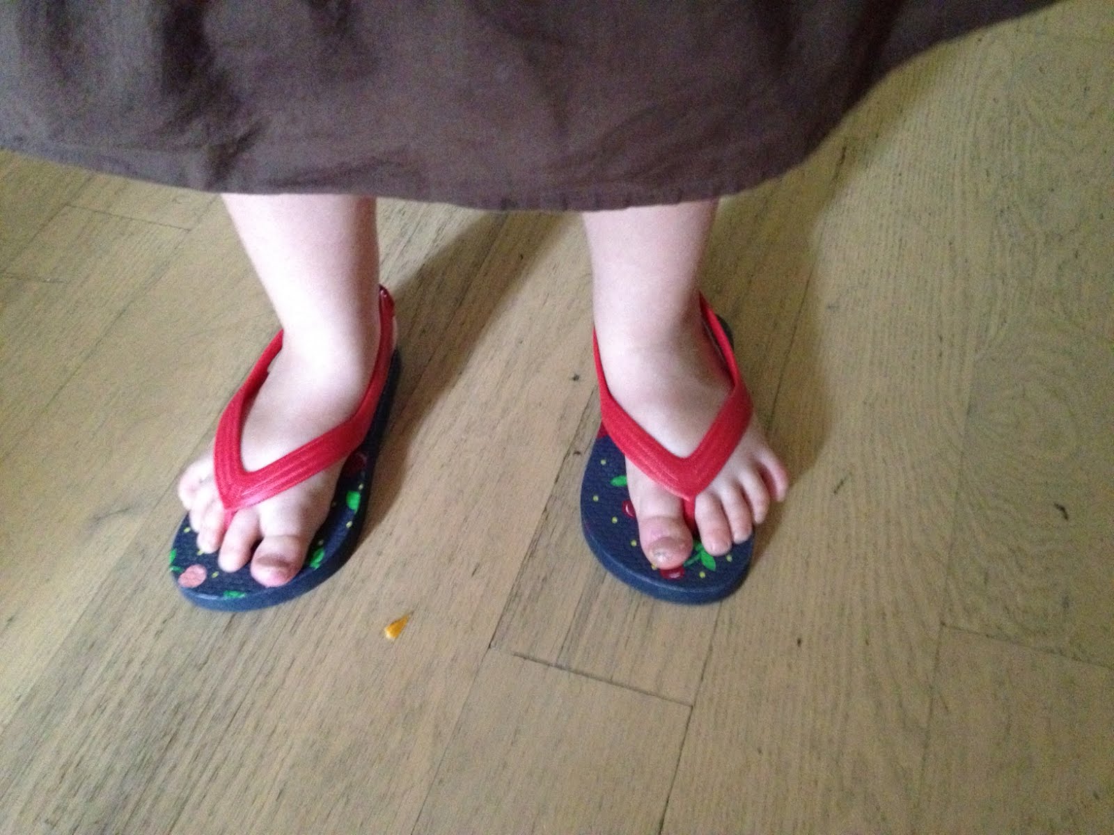 Hil bought them for her. And, according to Ruby, they are called: fip fops. She is so thrilled with them that if anyone notices the new shoes she explains that her mom bought them for her and that they are her fip fops. She is exceedingly proud of them. And she will not let me help her put them on. Not that I mind. I say as long as they are on her feet, she got them on by herself, and she didn't give me any grief while doing it, then I don't care if she has them on the proper feet or not. They are on and that is all that matters. Besides, look at those toes…