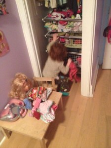 This is a picture of ruby “helping” me to put away the laundry. Technically speaking, in our house, I'm not supposed to touch the laundry. But it seemed like a good thing for ruby and i to set ourselves to as a precursor to quiet time. Anyway, imagine me taking folded items out of the laundry basket and handing them to her so that she could put them away in her drawers. Then imagine ruby painstakingly unfolding and “refolding” ever item she touched to her random three year old specifications. Ya – this job took a little longer than I thought it would.