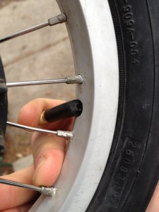 In case you can’t quite make out what this picture is, it is the busted valve stem from the inner tube inside the rear wheel of our double stroller. It is the second valve stem I have busted in as many days. I broke this one this morning as I was hustling to get the kids out the door and to school. We were already running late – its the first day back after Spring break and we were moving pretty slowly – all of us dragging our heals at the prospect of returning to our routines. There wasn’t so much a feeling of dread in the air – just melancholy at the fact our pretty fun time together as a family was coming to a very definitive end point – at least for a little while.