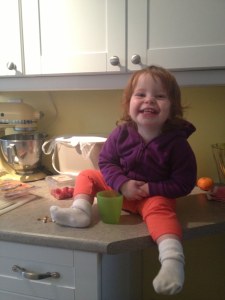 I took this photo post nap while giving Arden a snack before picking the other two up from school. I don't suppose that Sitting on the kitchen counter is a habit I want to encourage in my children. That said, i have fed all three of them snacks in this very spot at this very same stage of life and, for some reason, I never tire of how cute they look sitting on the counter.