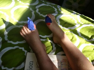 The band aids in this picture are on Ruby’s toes. How the box of band aids migrated into her room at quiet time, we will likely never know. Regardless, as you can tell by the scrumpled appearance of the blue band aid on her left big toe, these particular band aids supplied their fair share of entertainment value during quiet time on this day. I think it will be some time yet before we can convince any of them that these devices are single use items and not meant to be peeled back every few moments for the purpose of checking on the progress of healing. Although, I do have a pet theory that dealing with the adhesive nature of the band aid over multiple applications has somehow contributed to an increase in the manual dexterity of our children. They can be tricky to deal with.