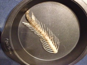 This is the salmon skeleton that Charlotte pulled out of the river this weekend. “This is the start of my collection, dad.” She said. Turns out there is a collection badge you can get at cubs. Since the salmon skeleton is currently sitting in a cake pan on the kitchen counter, I guess we are on our way.