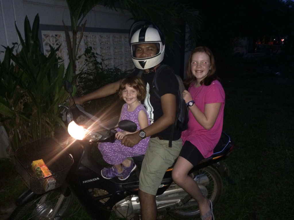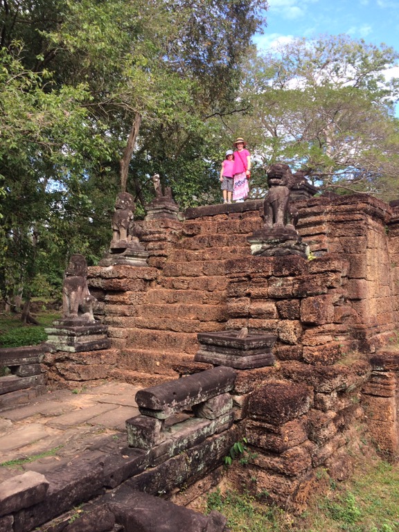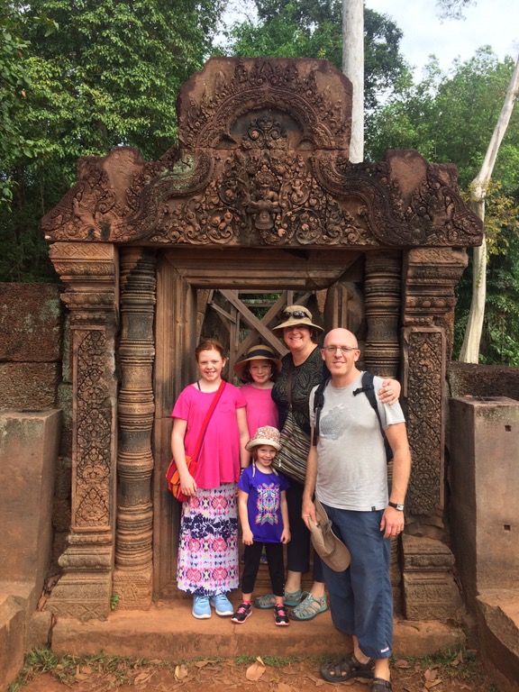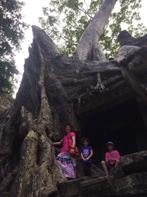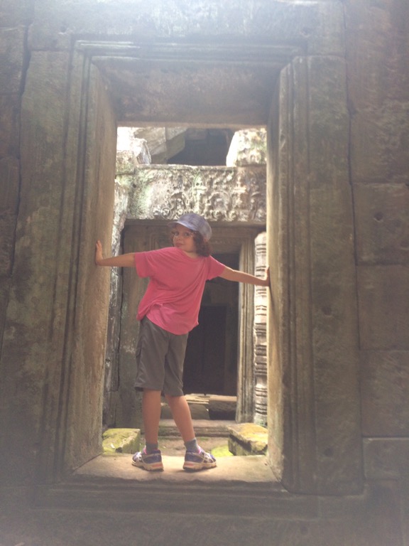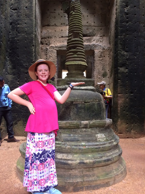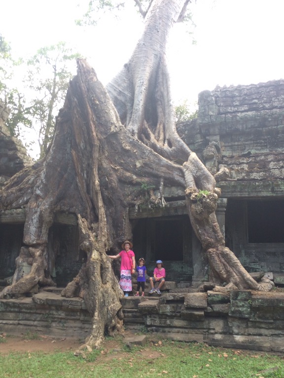 We’ve had a couple of great days in Siem Reap checking out all kinds of temples and ruins (along with several with LOTS of tourists) but we’ve found pockets of space to sit and reflect with the girls on what they are seeing. Looking at something that was built in 650 BC is such a strange concept to wrap your head around – especially when it is still standing and you know the builders of the structure did not have the advantage of machinery, let along electricity or master planning (but probably no building permits required…that should have saved some time). We’ve talked about how Ankgor Wat and the surrounding temples were built by slaves and thousands of people would have died in the process – all heavy stuff. We took the girls to the museum to read about the history – major fail! Boring! Plus the low lighting and jet lag were a bad combo. But once we got on our Tuk-Tuk and got to climb on the ruins, it got our juices flowing (the fresh fruit also helped).