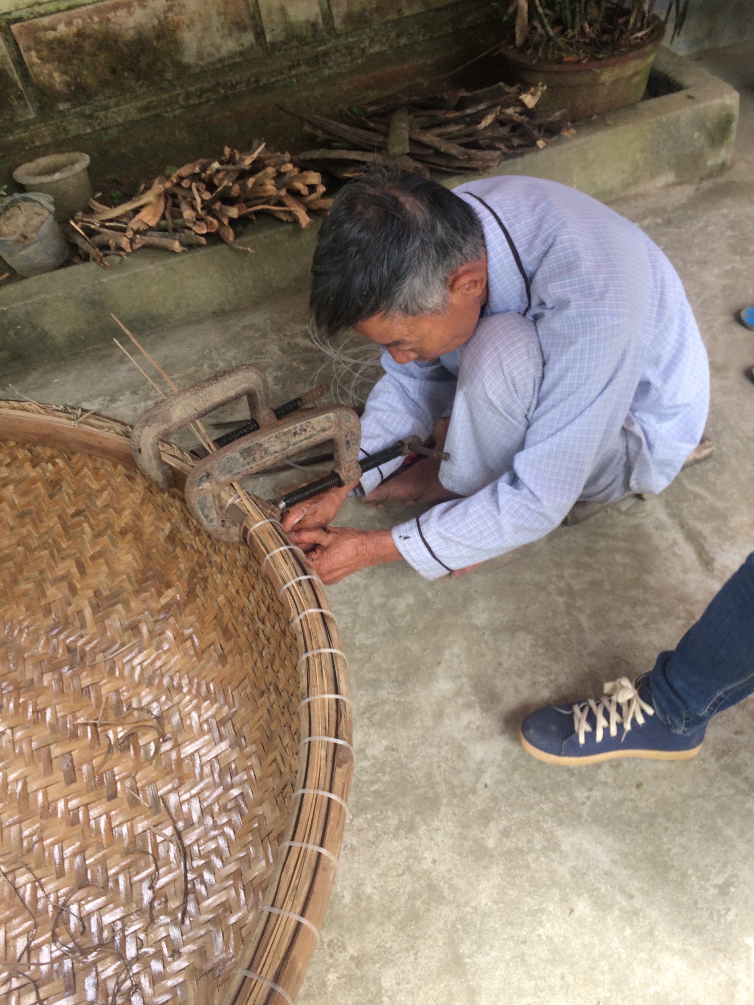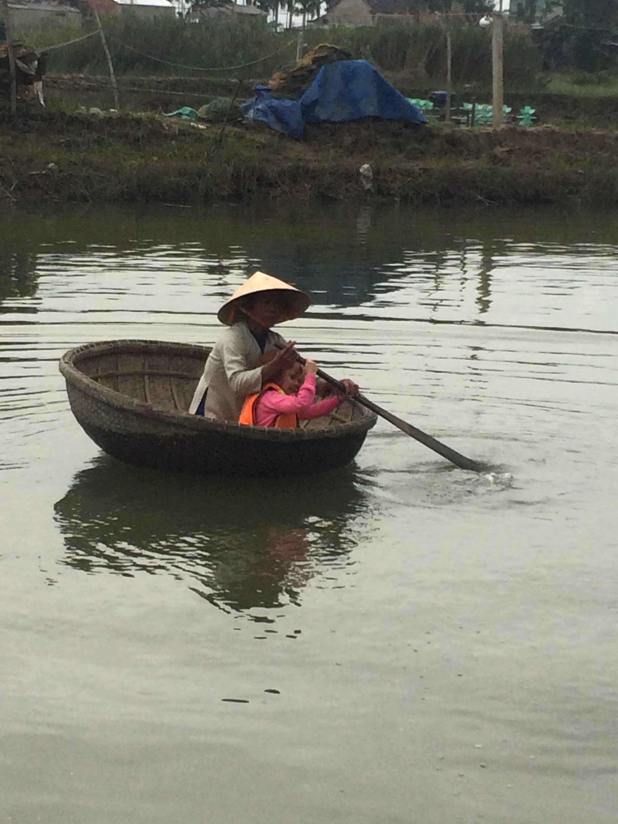 Traditional Vietnamese round boat construction (The boats are waterproofed with Cow manure and tree resin).