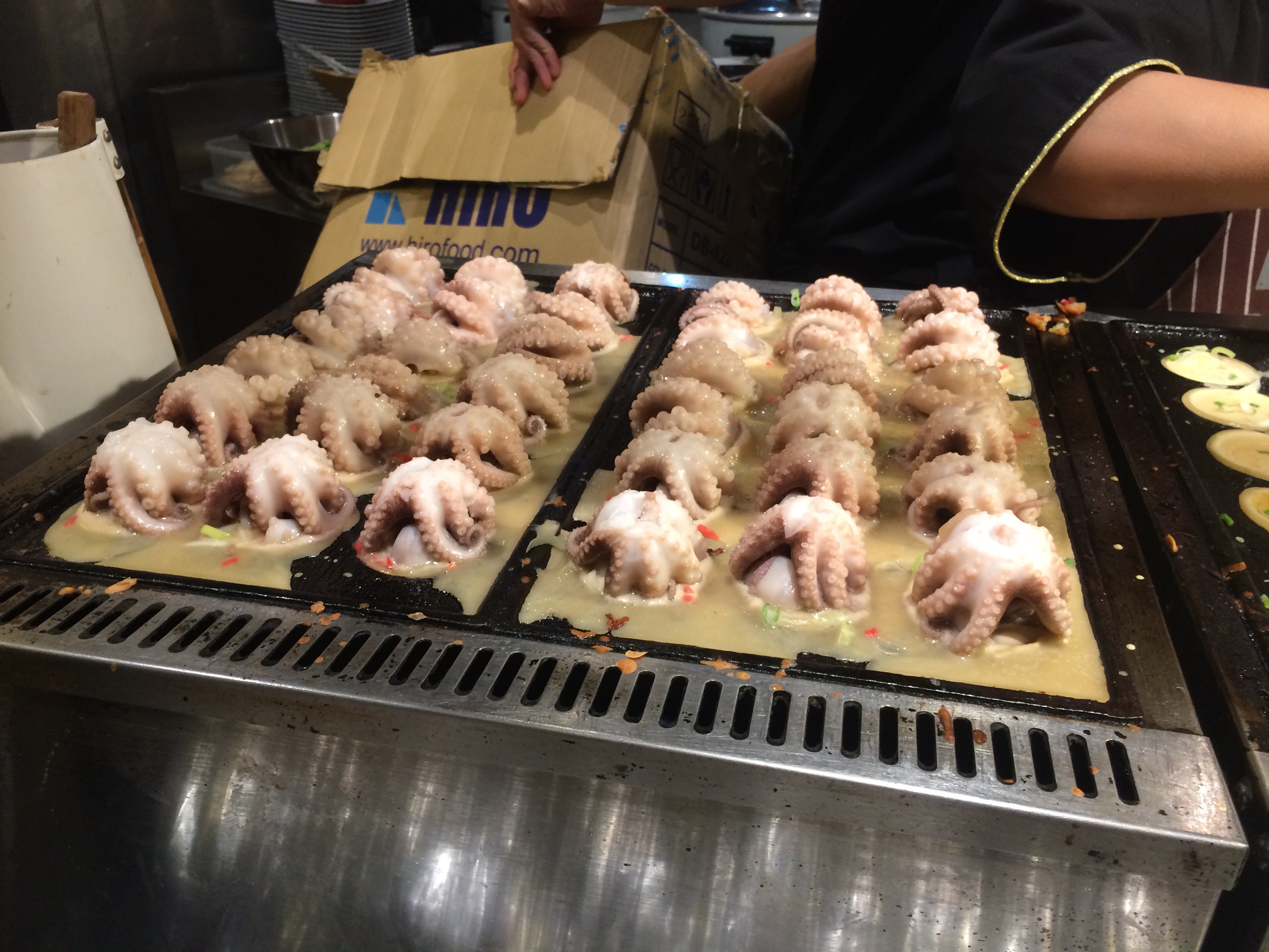 If you are asking yourself: are those baby octopi on a grill in a mall food court? Then the answer is yes.