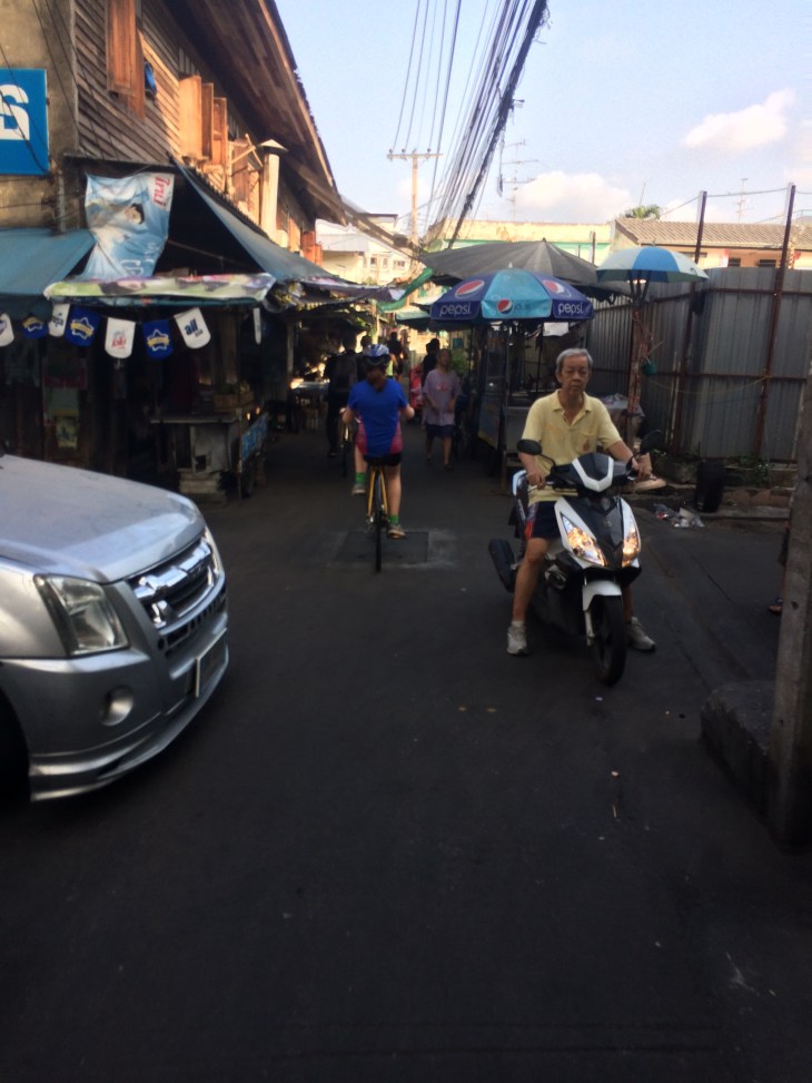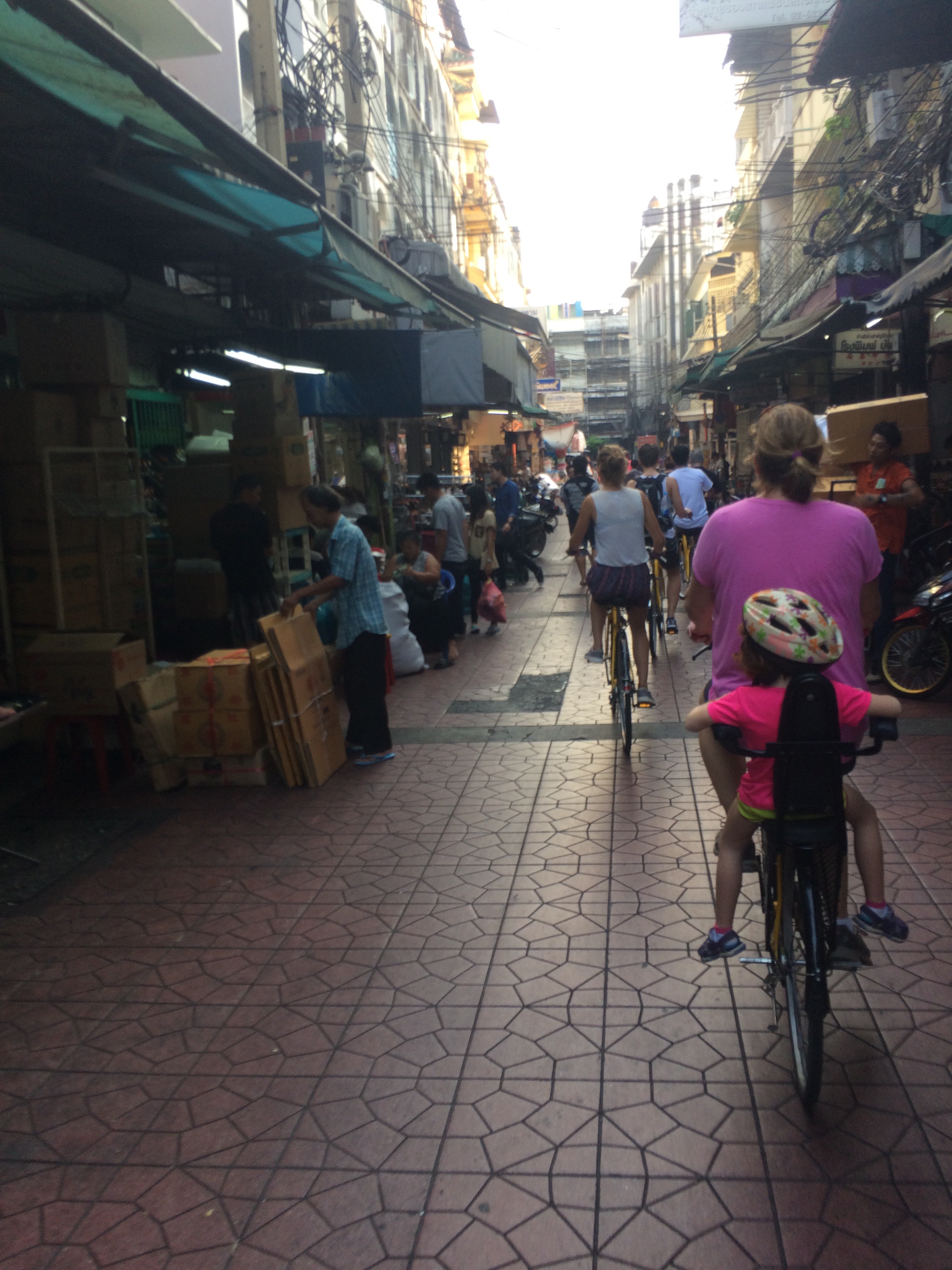 We spent the morning of today on a bike tour of Bangkok. It was very challenging. We cycled through all kinds of back alleys, the markets of Bangkok’s China Town, and farm fields. A lot of the trip was spent on paths that were 1.5m or less in diameter. We also spent some of the trip on a long tail boat cruising the canals in the city – and that part was pretty awesome.