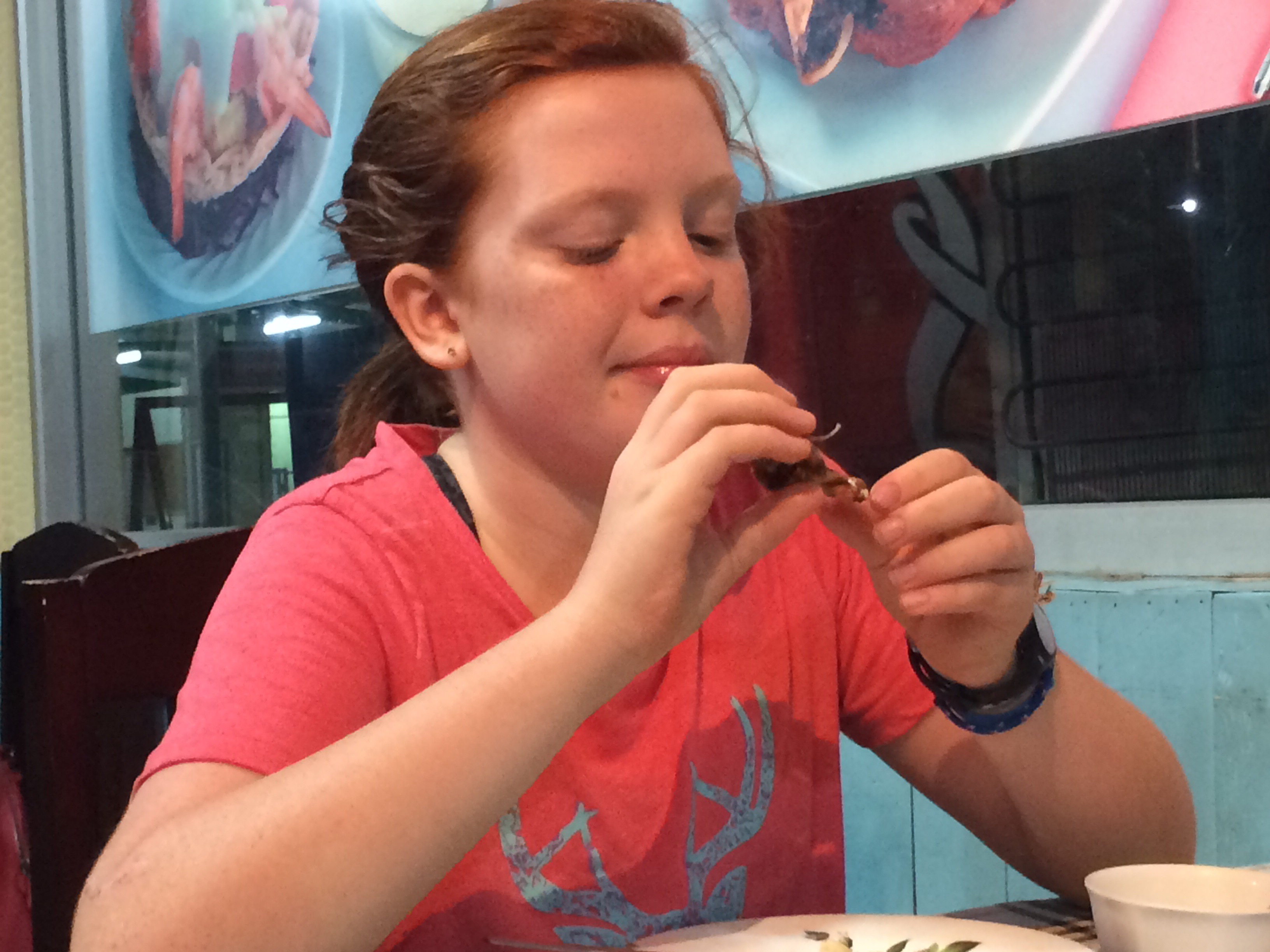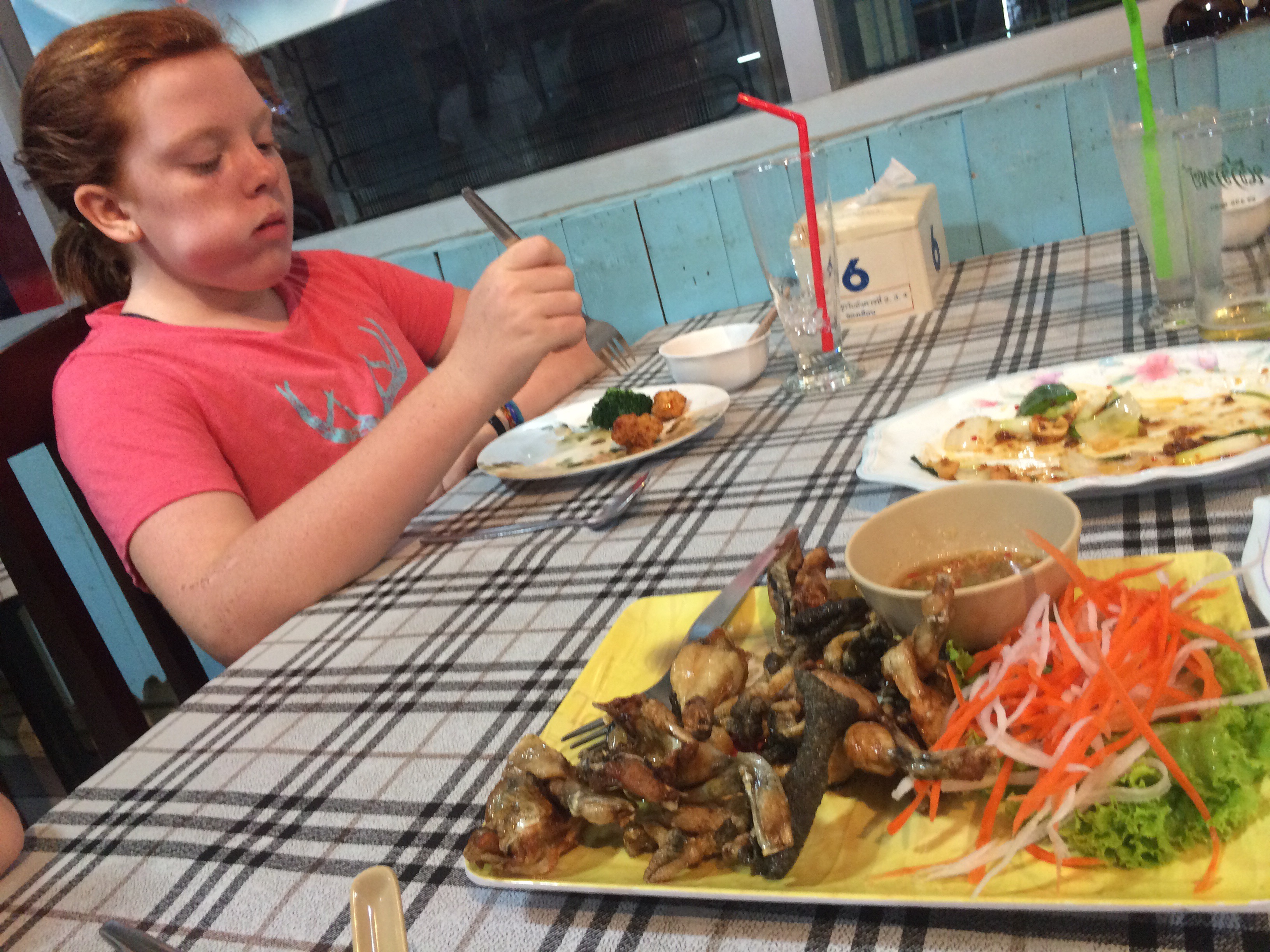 When I ordered the frog the kids were less than impressed. Ruby and Charlotte both reluctantly agreed to try it so that could tell people they had and Hil said she was in. But things changed fast for the table when we watched through the window right beside our table as a cook from the kitchen walked over to a large glass tank, reach in, grab an enormous live frog and walk back to the kitchen. A good reminder for all of us as to where food comes from.