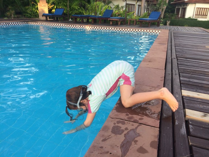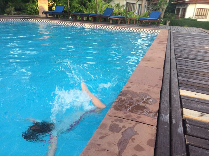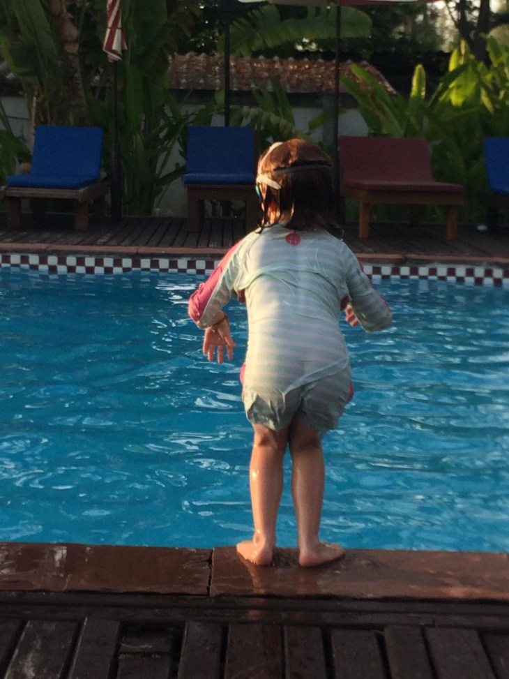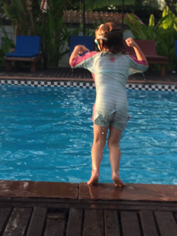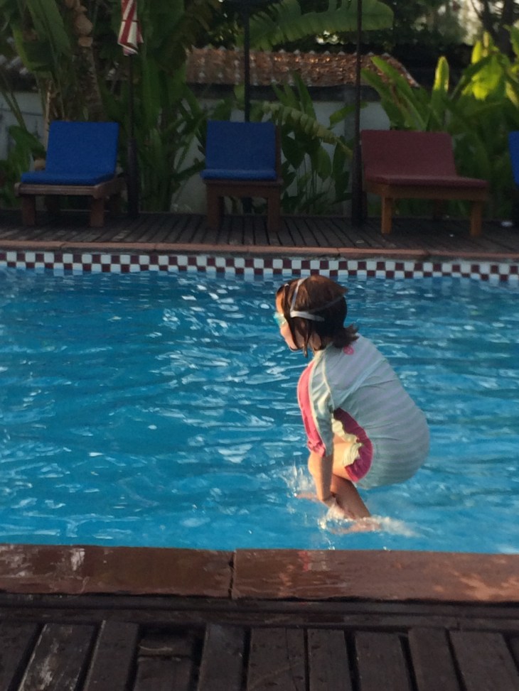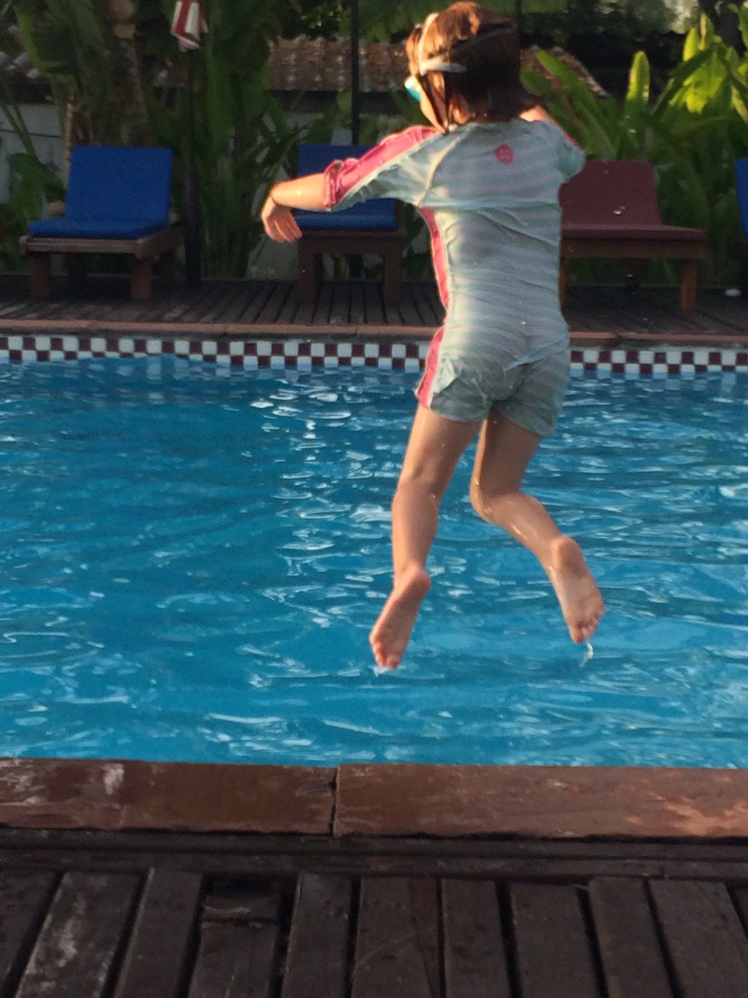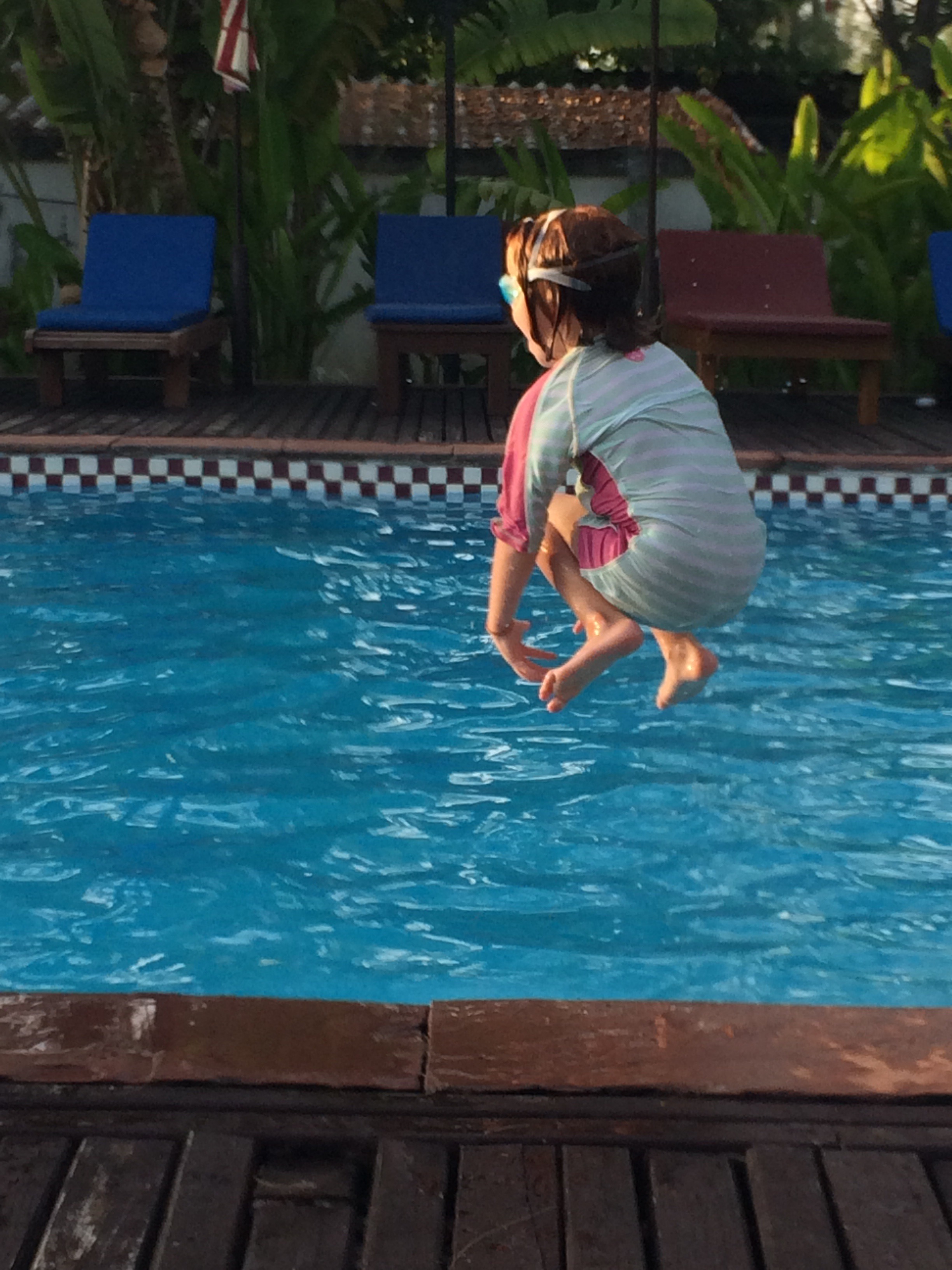 And since Summer 2016 she has been consistently ramping up her interest and involvement with swimming whenever she gets the chance. She is now comfortable swimming in moderate surf in the ocean, and leaping off any ledge that is less than 1m in height. She even jumped off the jetty on Koh Rong Samloem when we were there for a week. The drop was long enough for the expression on her face to change from “this is fun” to “this is terrifying” right before she hit the water. That drop was about 3m. She didn’t repeat that one. But now I’m off track.