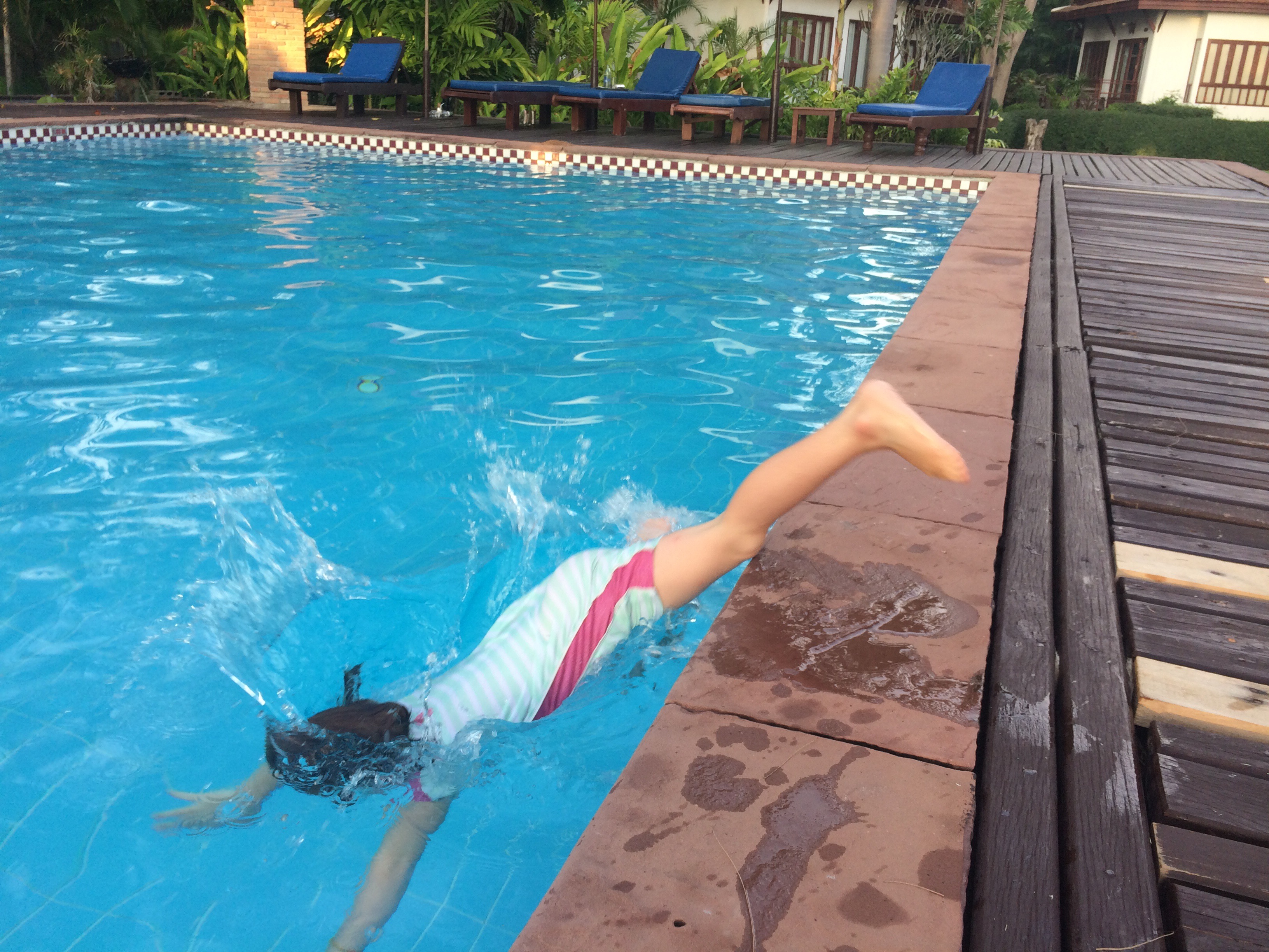 She’s the third child in the family so we don’t have her first steps or her first words or much else by way of documenting her early years. And today I caught a lucky break and captured her first dive.