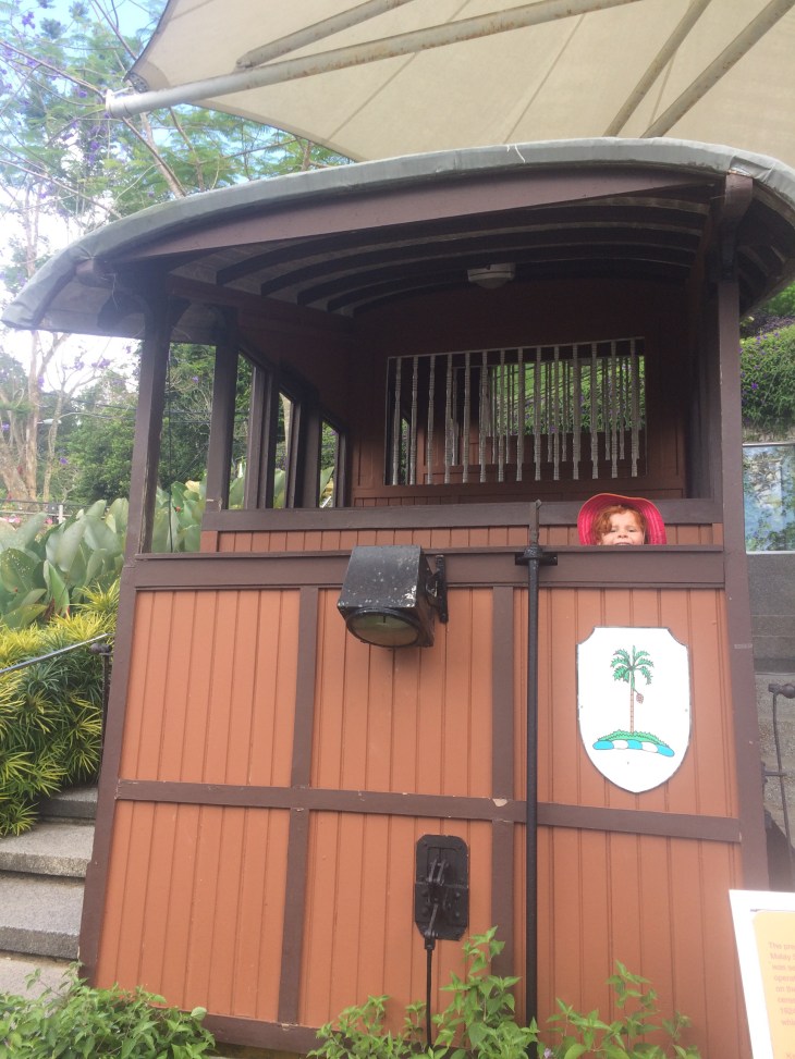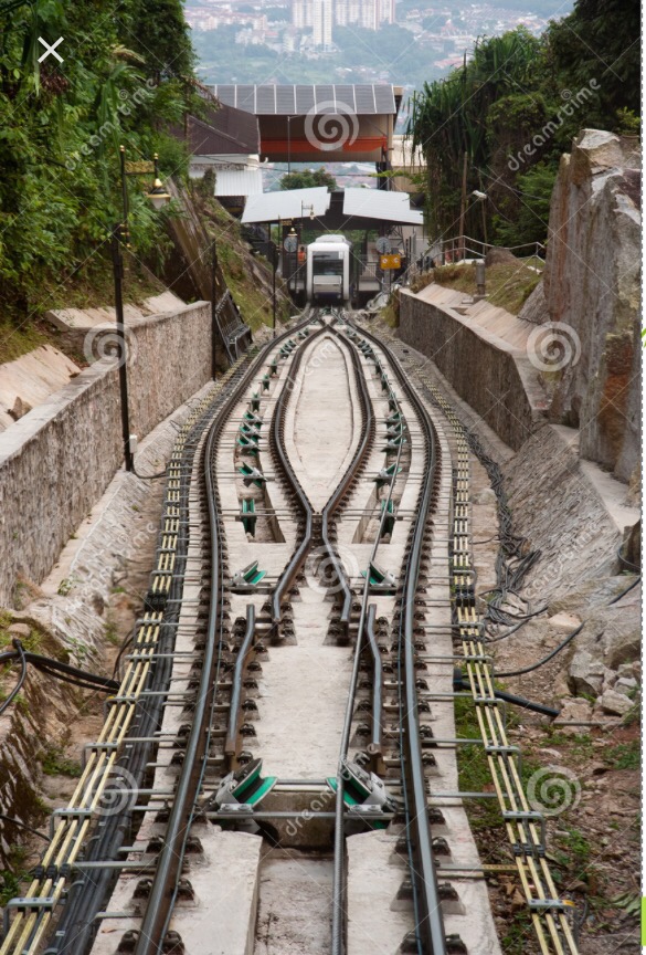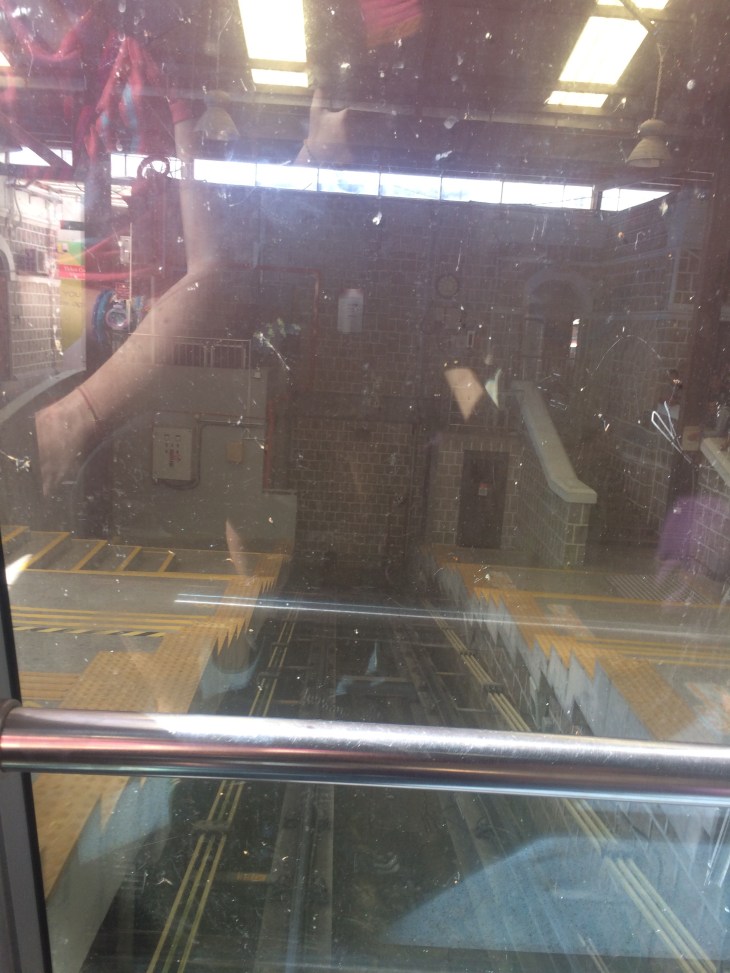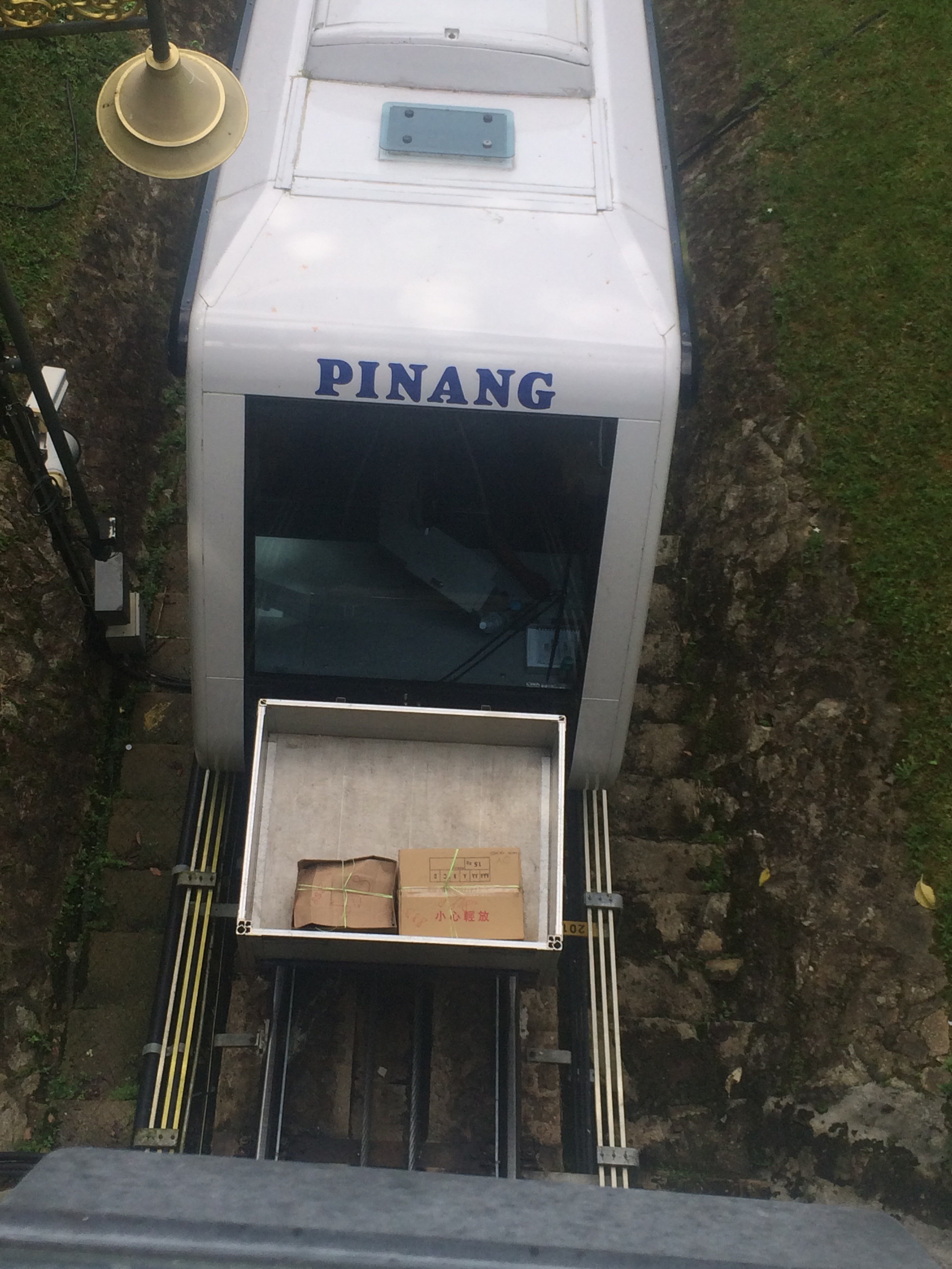 This is how the feniculer works. First both cars fill up then the guards give the all clear thumbs up sign and the cars start to move. At the siding, the cars each go on a side but I think that the driver needs to hit a button that changes the tracks then they hit it again and then you go down some more and you are at the station.
