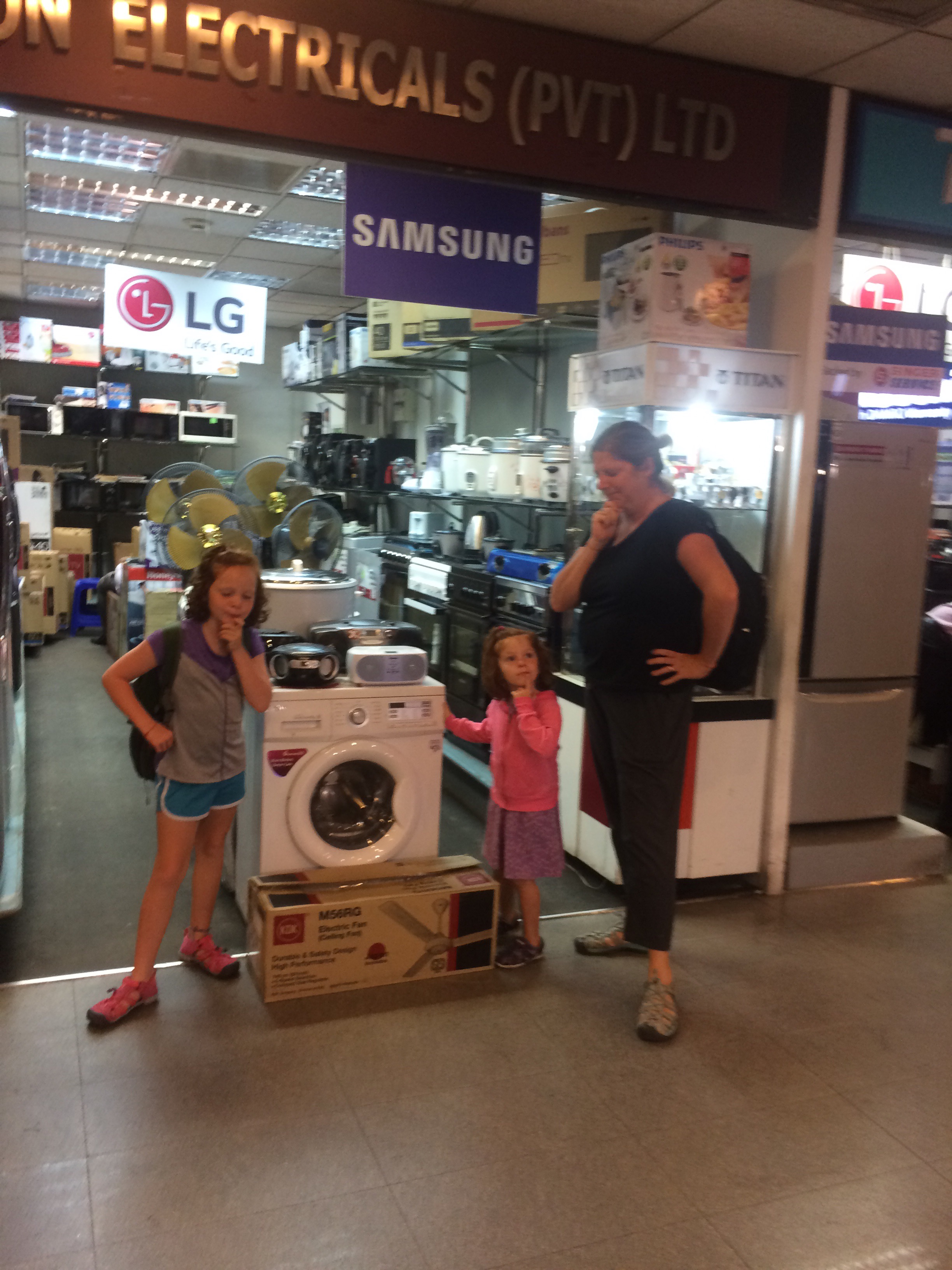 And we capped off the night with a stroll through the duty free appliance mall at the airport in Colombo, Sri Lanka where blenders, washing machines, and vacuum cleaners are on offer at midnight (and, presumably, all the other hours of the day as well).