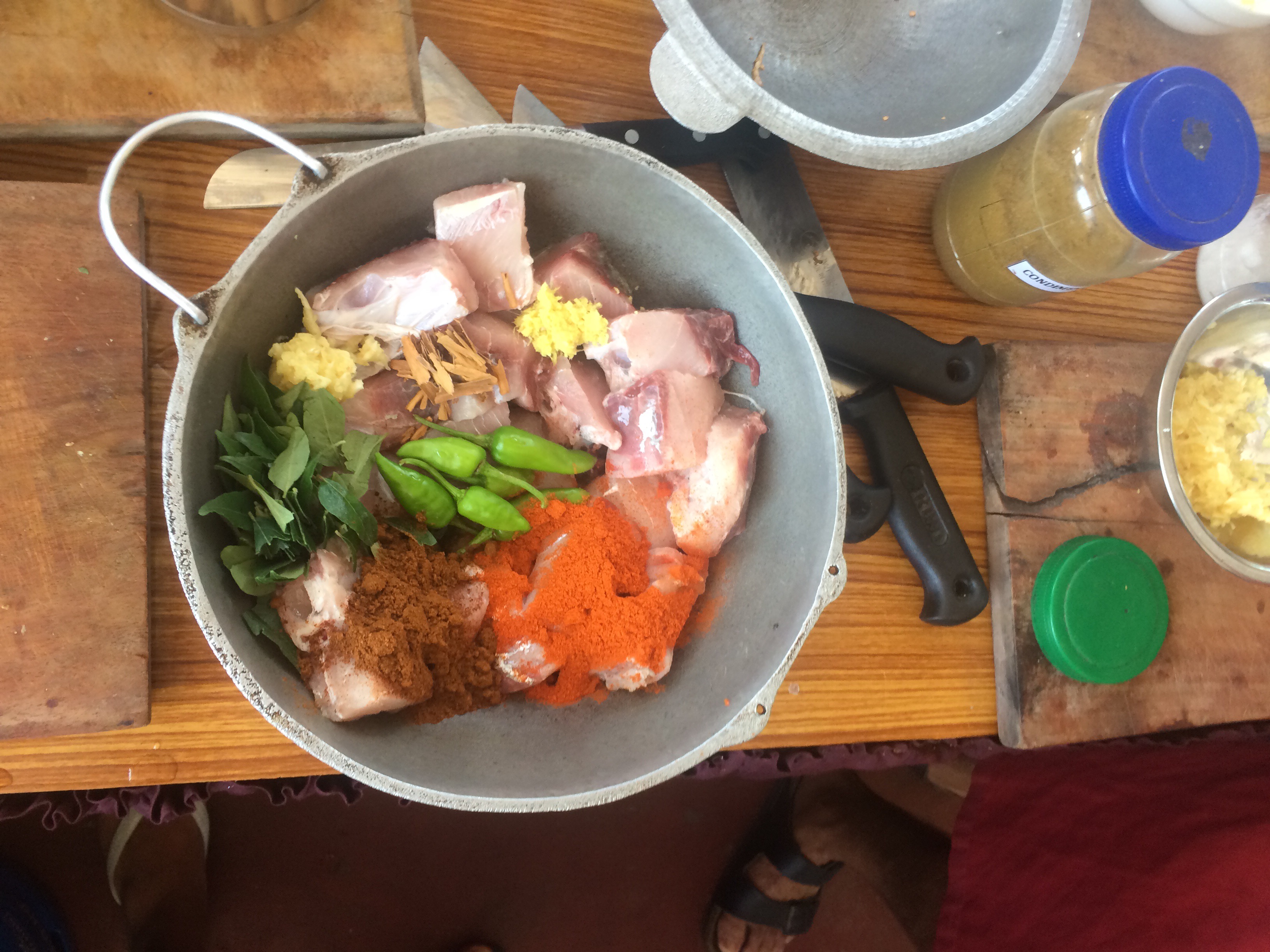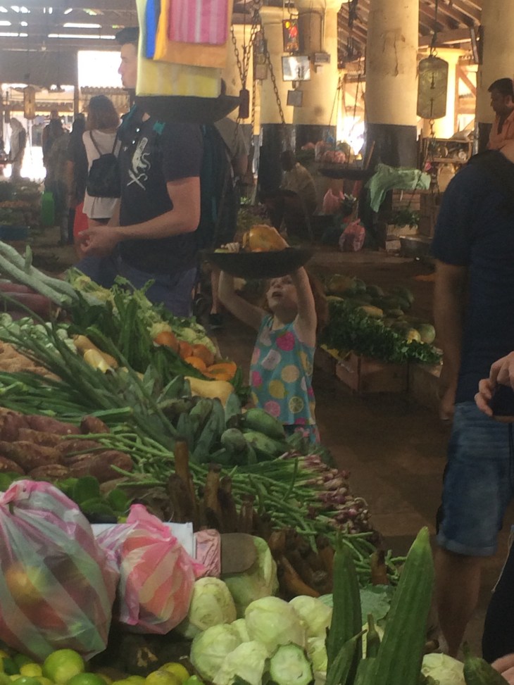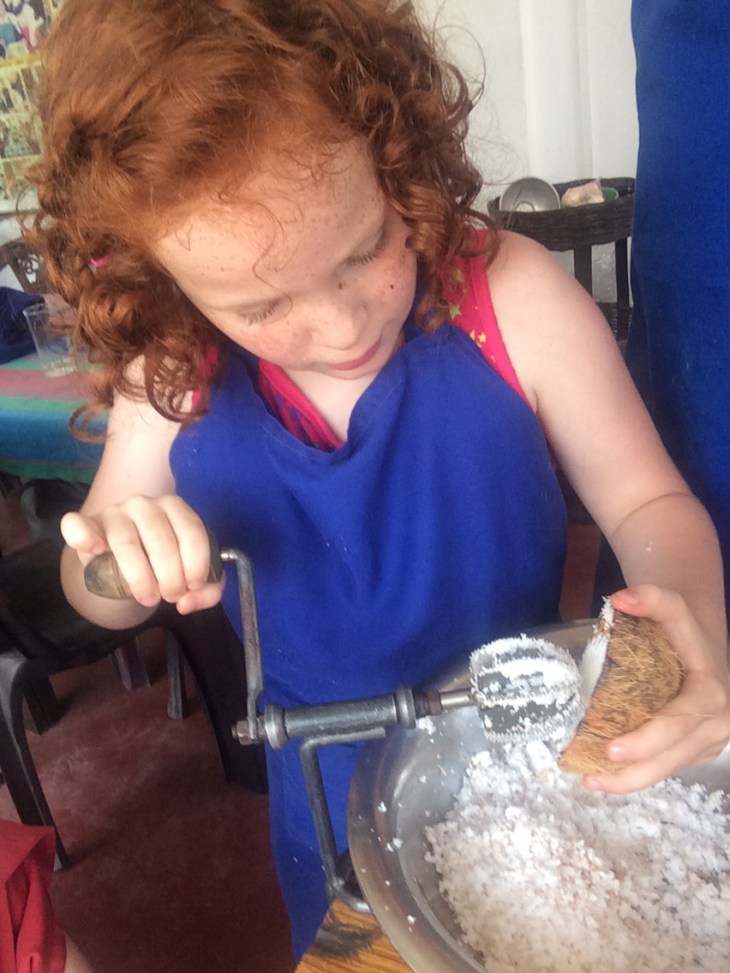 Drew: really enjoyed the trip to the market to see all the food. Especially enjoyed watching the fish monger work. And like learning to use a new kitchen tool: the coconut mill.