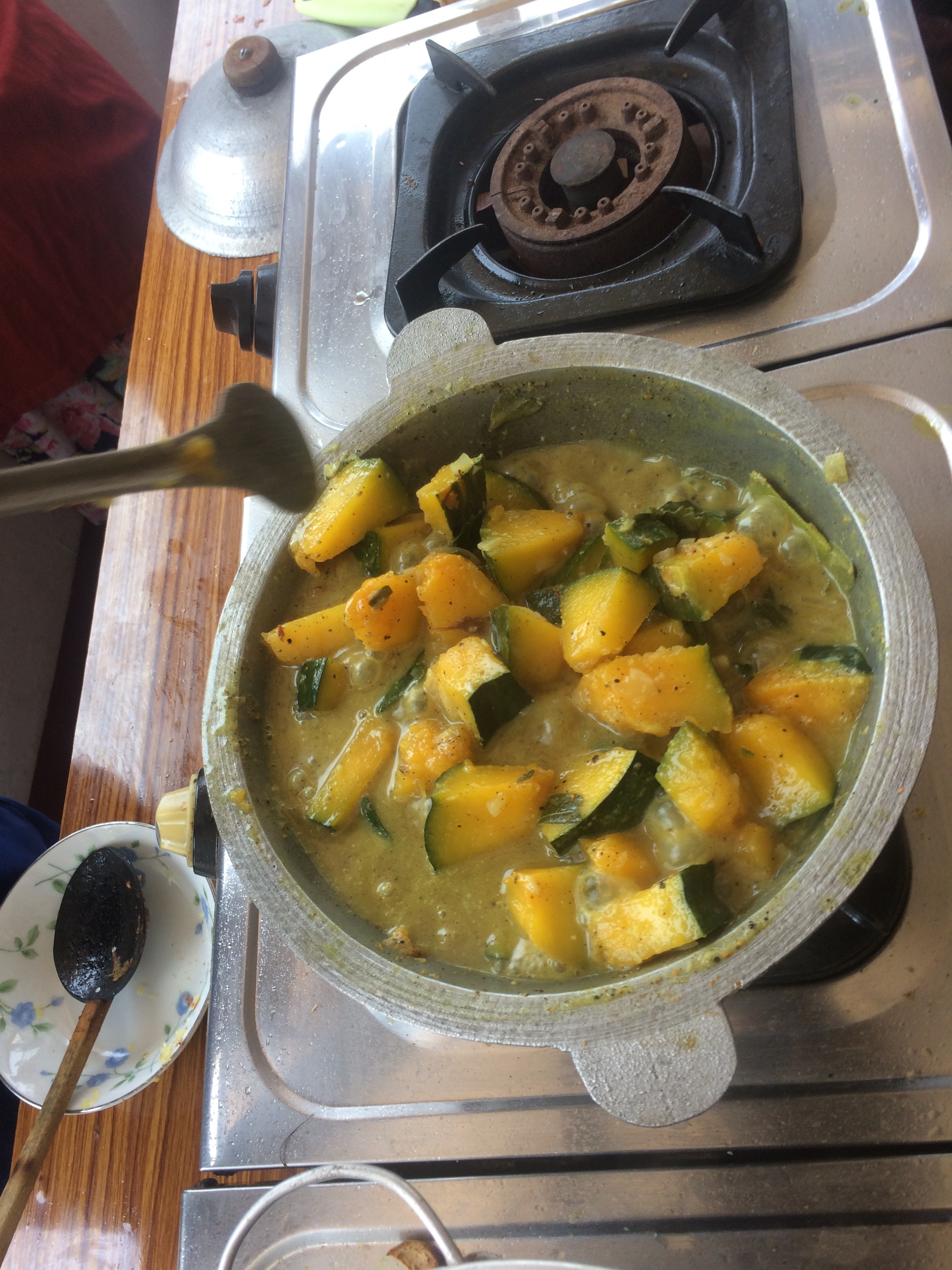 Then we made curry. Curry is a very common dish in Asia. It is spicey. Sometimes it can be yellow. It can also be red, green, white. It is always eaten with rice. (Which we love…)