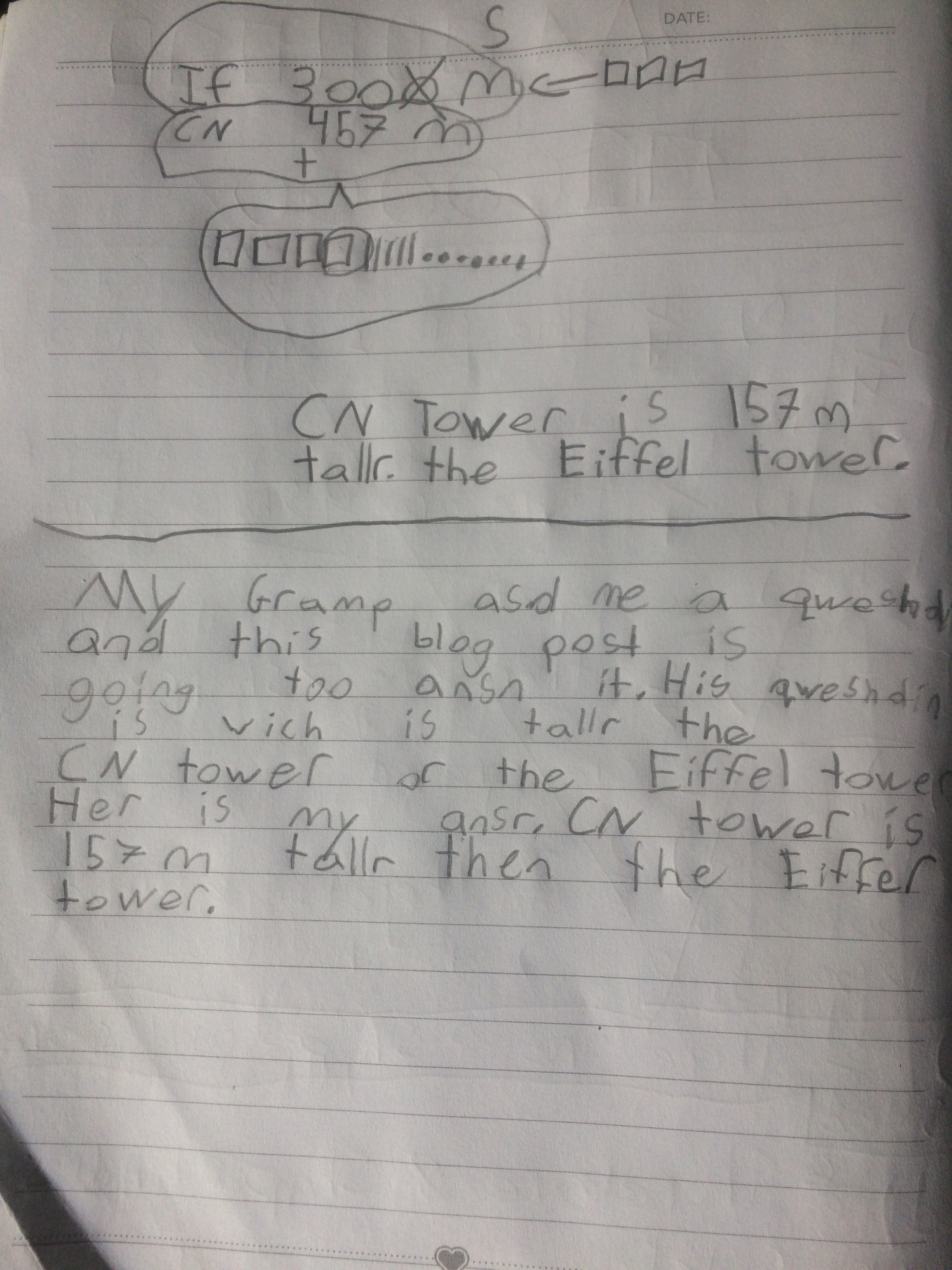 I know you’re going to go to the top of the Eiffel Tower soon and when you get back I’ll take you to the top of the CN MTower too. Then you can see how things on the ground look from way high up.