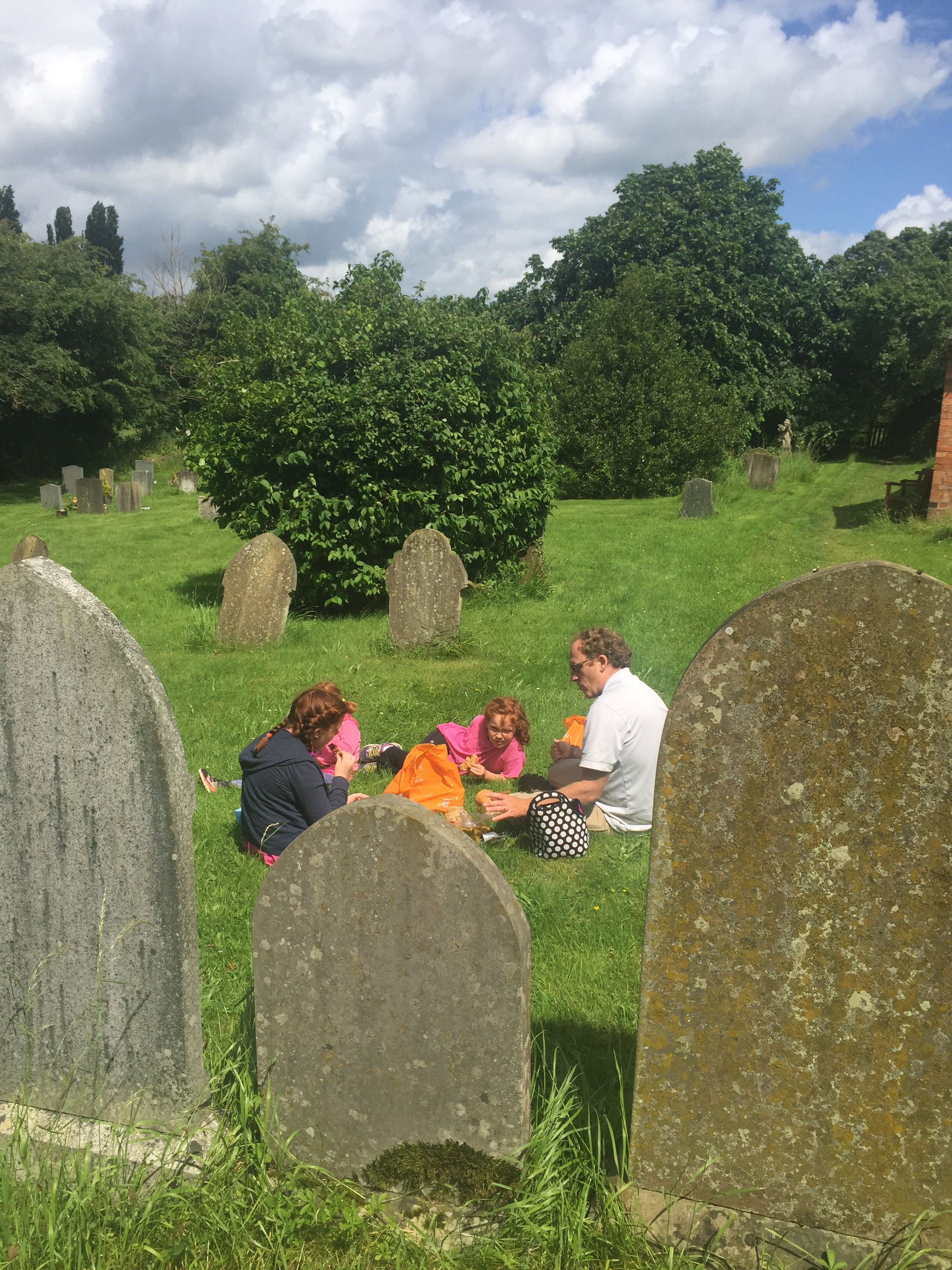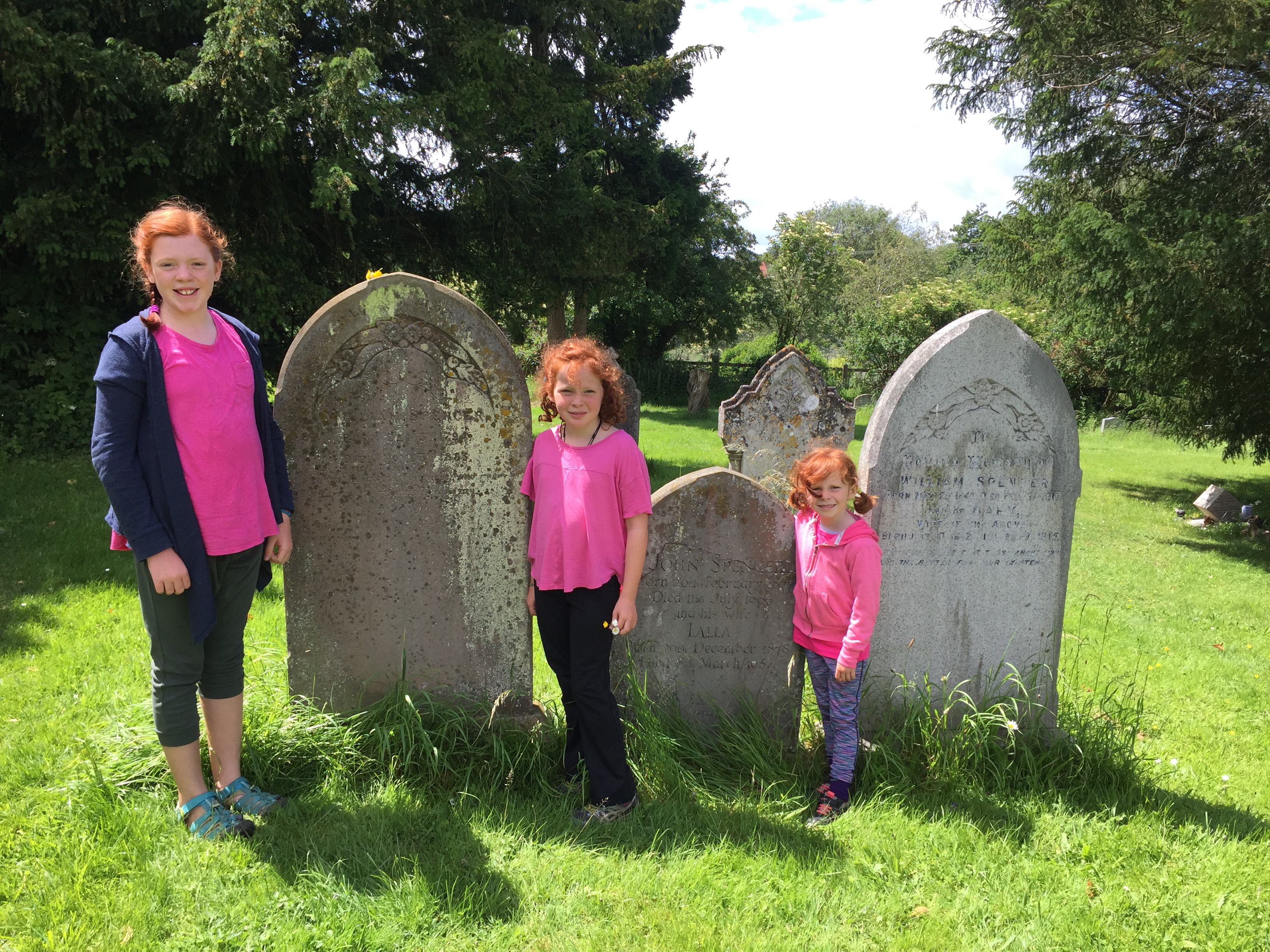 We also visited the local church where we found gravestones of my Spencer ancestors. We stopped for a picnic lunch among the stones (you can only imagine the questions coming from the Snaps about death, graves, relatives, etc – we covered it all).