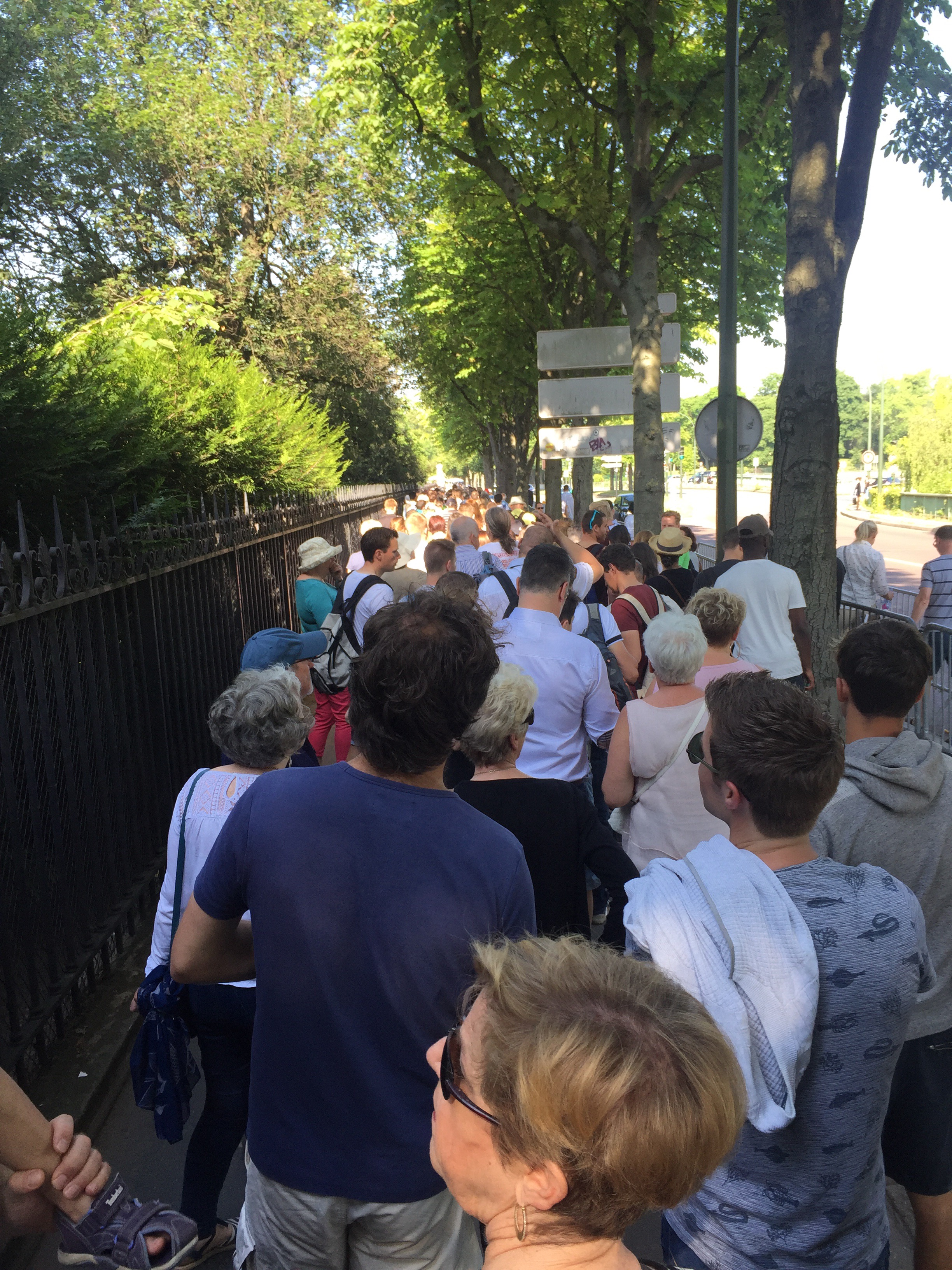 The crowds trying to enter the grounds. You could hear every language under the sun!