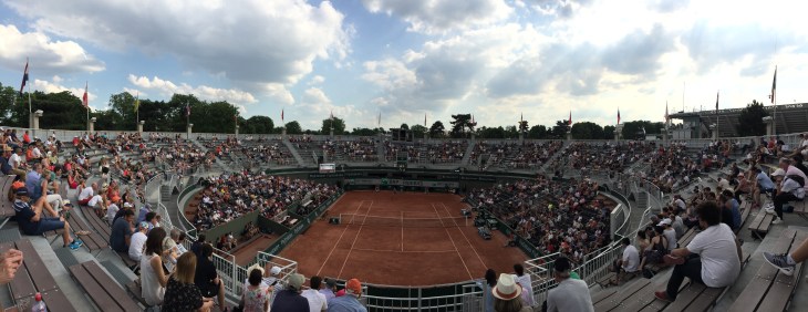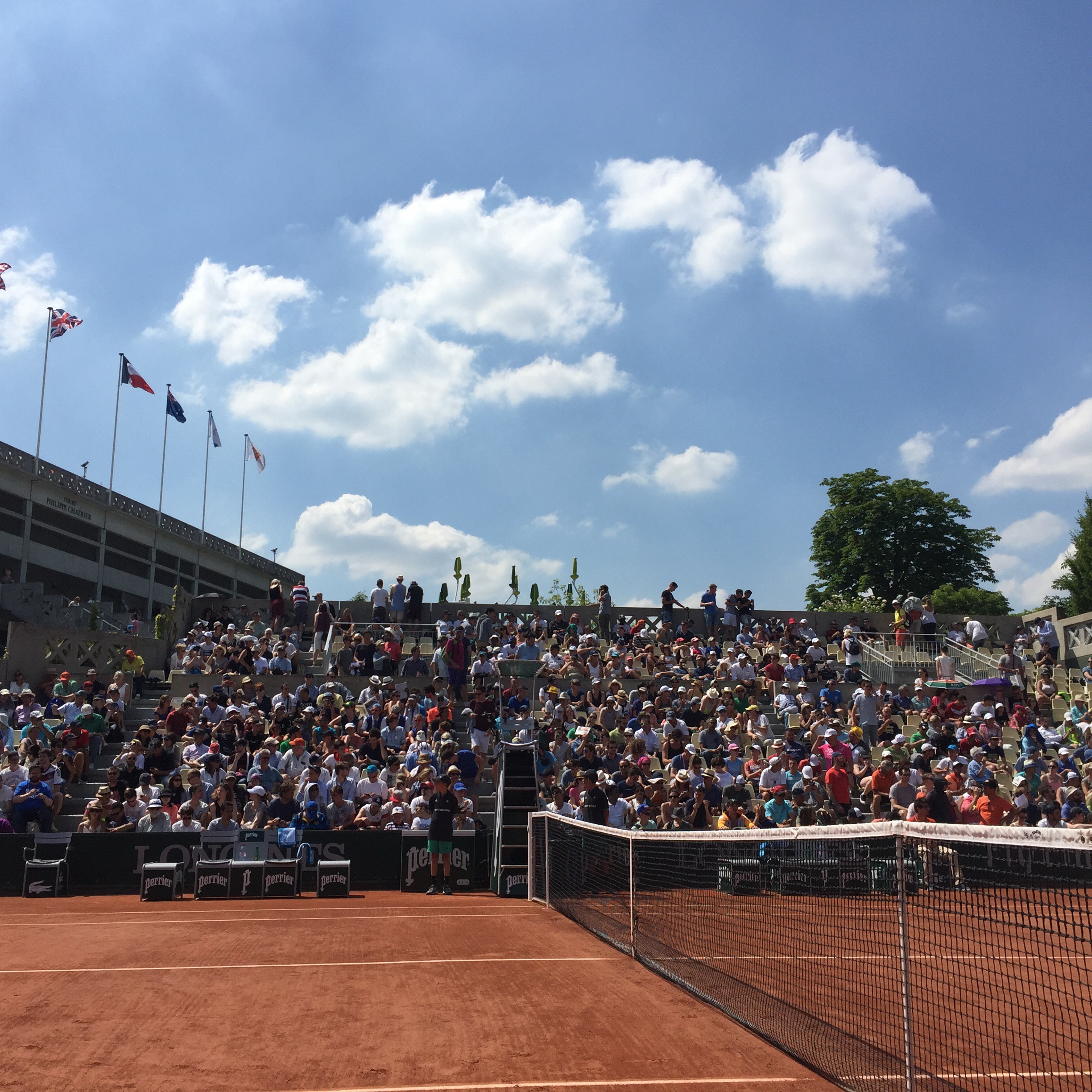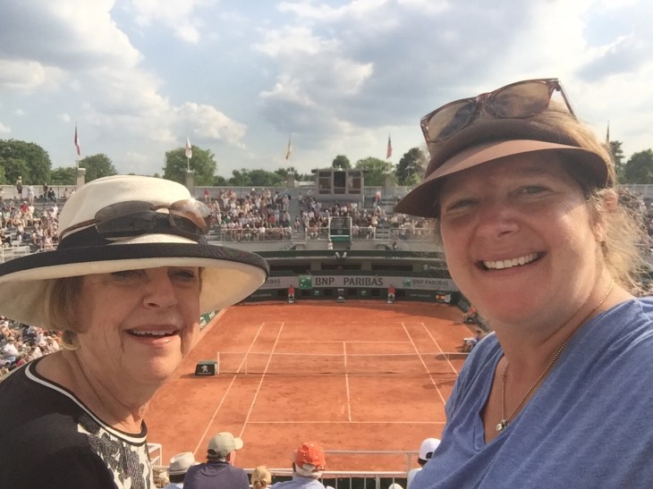 For those of you who know my family know that Erica (my mom) is a HUGE tennis fan. Her fandom is legendary (get her to tell you about the time she met Monica Selles’ mother – oh, and she met Monica Selles as well) and coming to the French Open with her kids and grandkids was pretty special. Her excitement is contagious and although the Snaps don’t play tennis, they love to watch with YaYa (my mom) and ask all kinds of questions about the rules, the players, the fans, etc. My mom knows everything about tennis. So to have tickets to the French Open was a thrill and one my mom was going to enjoy every second. So while we were there with the crowds when the gates opened at 11 AM, by 5 PM the Snaps and Pappy were done – but not Erica! We stuck it out until the last ray of light disappeared from the courts. She tried to find even a player practicing on the outer courts at 9:30 PM, but alas, it was over.