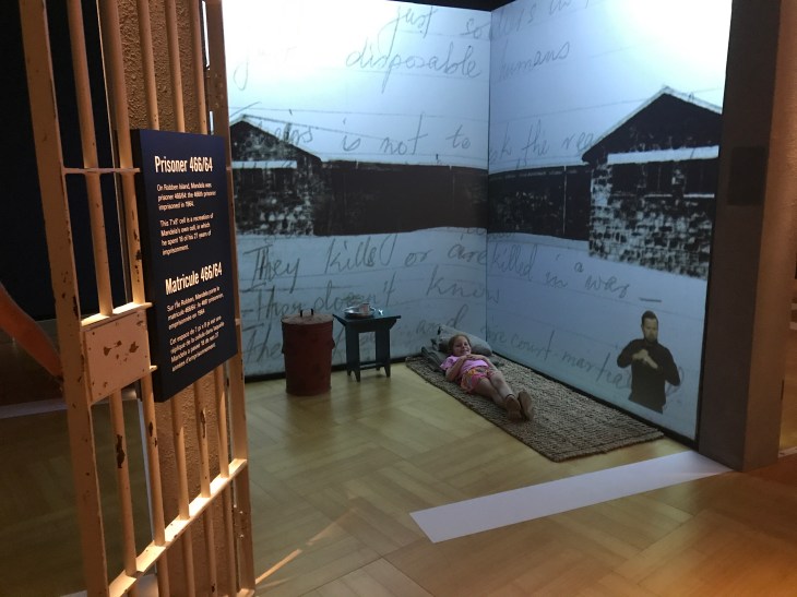 It has clearly been designed for people of all ages to encounter their privilege. Here Arden is seen in a replica of the jail cell that Nelson Mandela spent 18 years in.