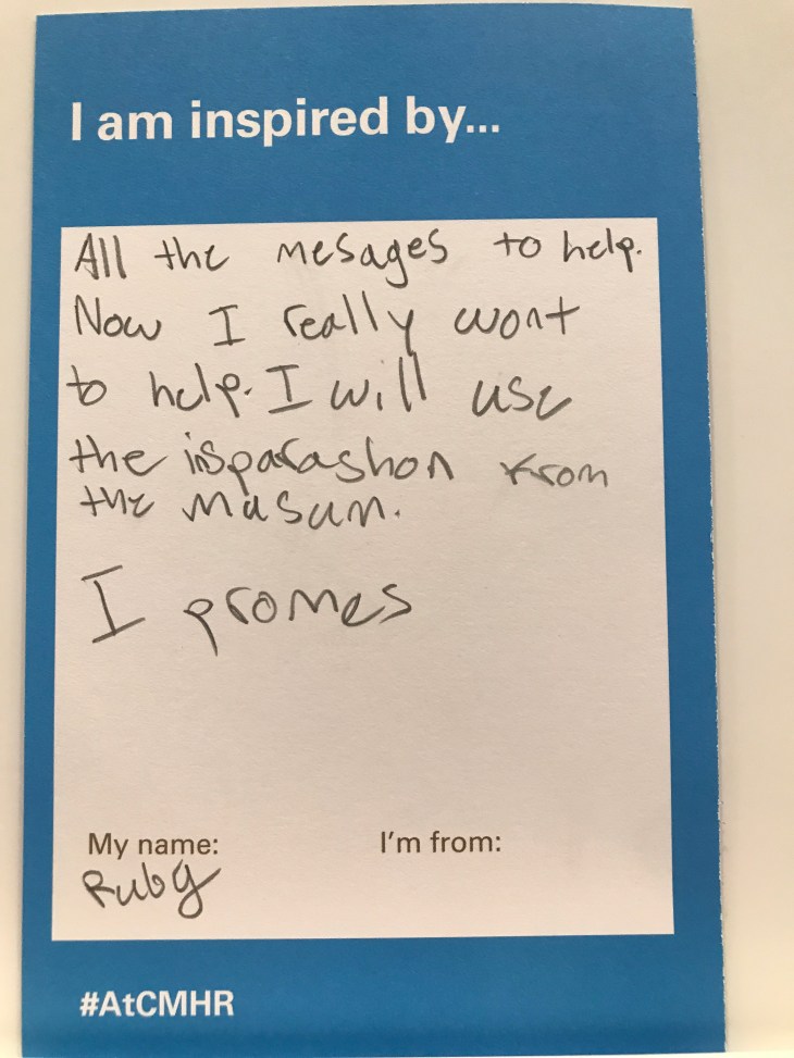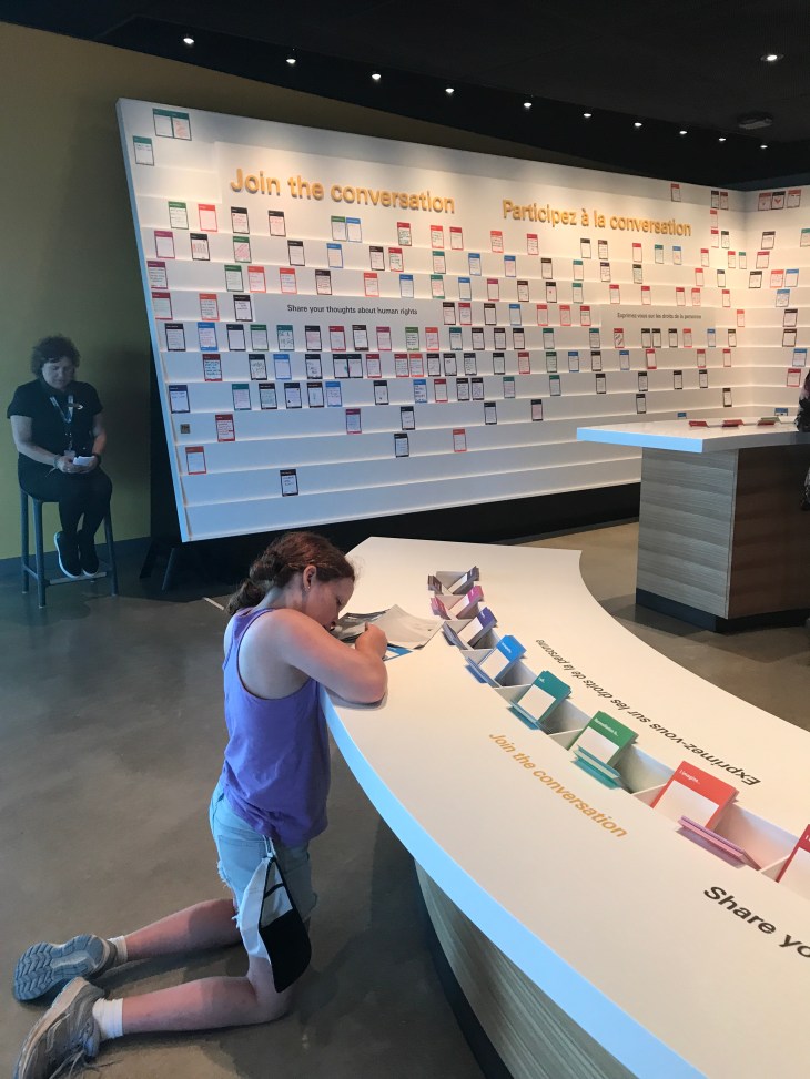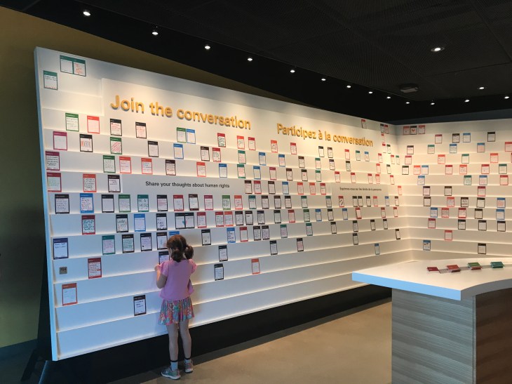 Walking out of the museum, it’s hard to summarize what I felt other than to say that I felt a deep sense of gratitude. Gratitude to be born free in Canada. Gratitude to live in a country that is openly willing to acknowledge and grapple with things that are hard to talk about. And gratitude for the encouraging tone of the museum. Despite the atrocities depicted, despite the mistakes made around the world and here in Canada, despite the suffering that has taken place in my own lifetime, I did not leave the museum with a sense of foreboding or guilt. I left the museum knowing that I was living in a time and that my daughters were growing up in a time when our small actions of awareness and kindness and love can make humanity better in small and meaningful ways.