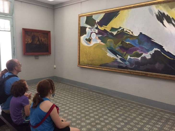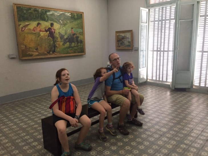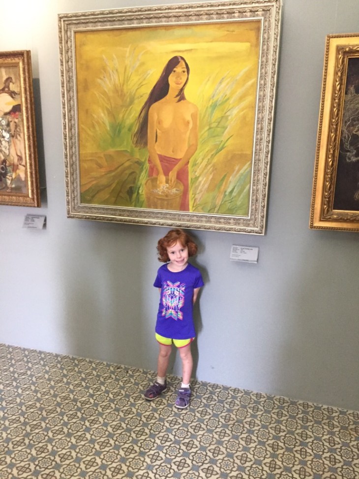 Today we went to a art gallery. At the art gallery we saw Modern art, sculptures, water coolers and lots more. The art gallery is called HO CHI MINH CITY FINE ARTS MUSEEM. We walked around the art gallery for 45 minutes to 1 hour. There were lots of paintings and some sketches. Some paintings where about the war, it made me sad. Some had kids in them, and some had nak ladies in them, it was weird. All the paintings where beautiful! I had a lot of fun, I would go back.