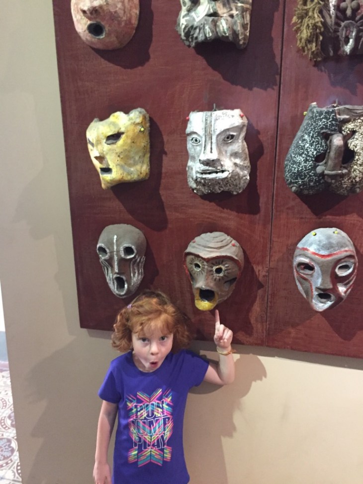 I love the way that you & your sisters interpreted the art work, especially the masks!