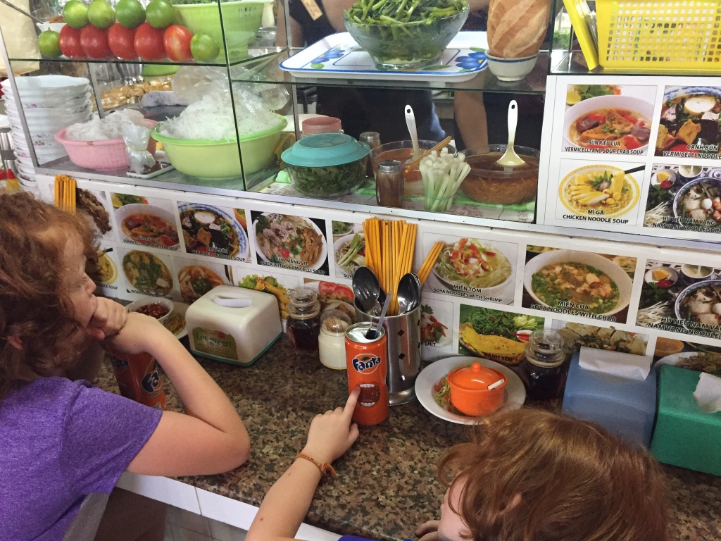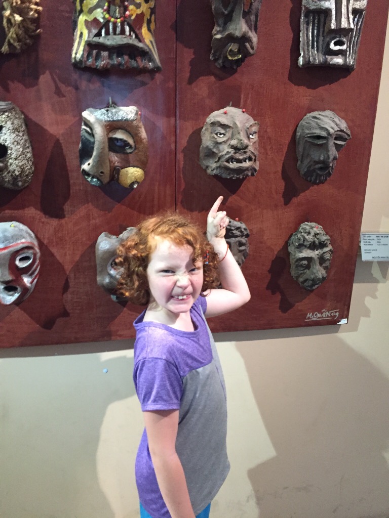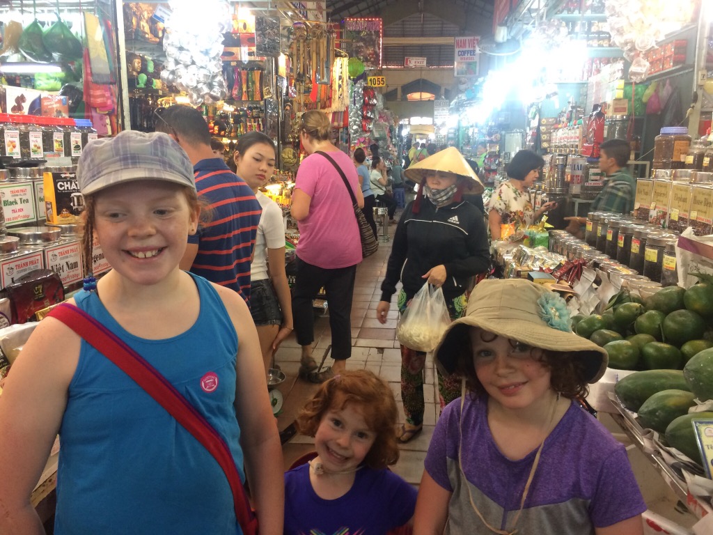 Yes happy 😊 ❤️❤️❤️’S day .. what a day you had ‼ loved all the art but especially the masks Arden is funny ‼ so you are in ho chi min city .. I was there but don’t remember the market .. aren’t they fun ?? Everything to buy !! I guess you are all really good by now at using chopsticks!! Your lunch looks YUMMERS love to you all I wake up waiting for your posts love A.J. 😘😘😘