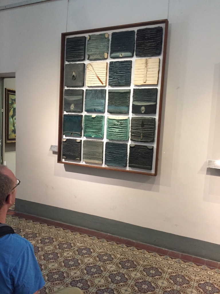 Today we went to a art gallery. At the art gallery we saw Modern art, sculptures, water coolers and lots more. The art gallery is called HO CHI MINH CITY FINE ARTS MUSEEM. We walked around the art gallery for 45 minutes to 1 hour. There were lots of paintings and some sketches. Some paintings where about the war, it made me sad. Some had kids in them, and some had nak ladies in them, it was weird. All the paintings where beautiful! I had a lot of fun, I would go back.